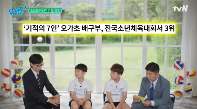 이번주 tvN '유 퀴즈'에는 초등학교 배구선수 김민겸, 최용락 선수가 출연하는데요.